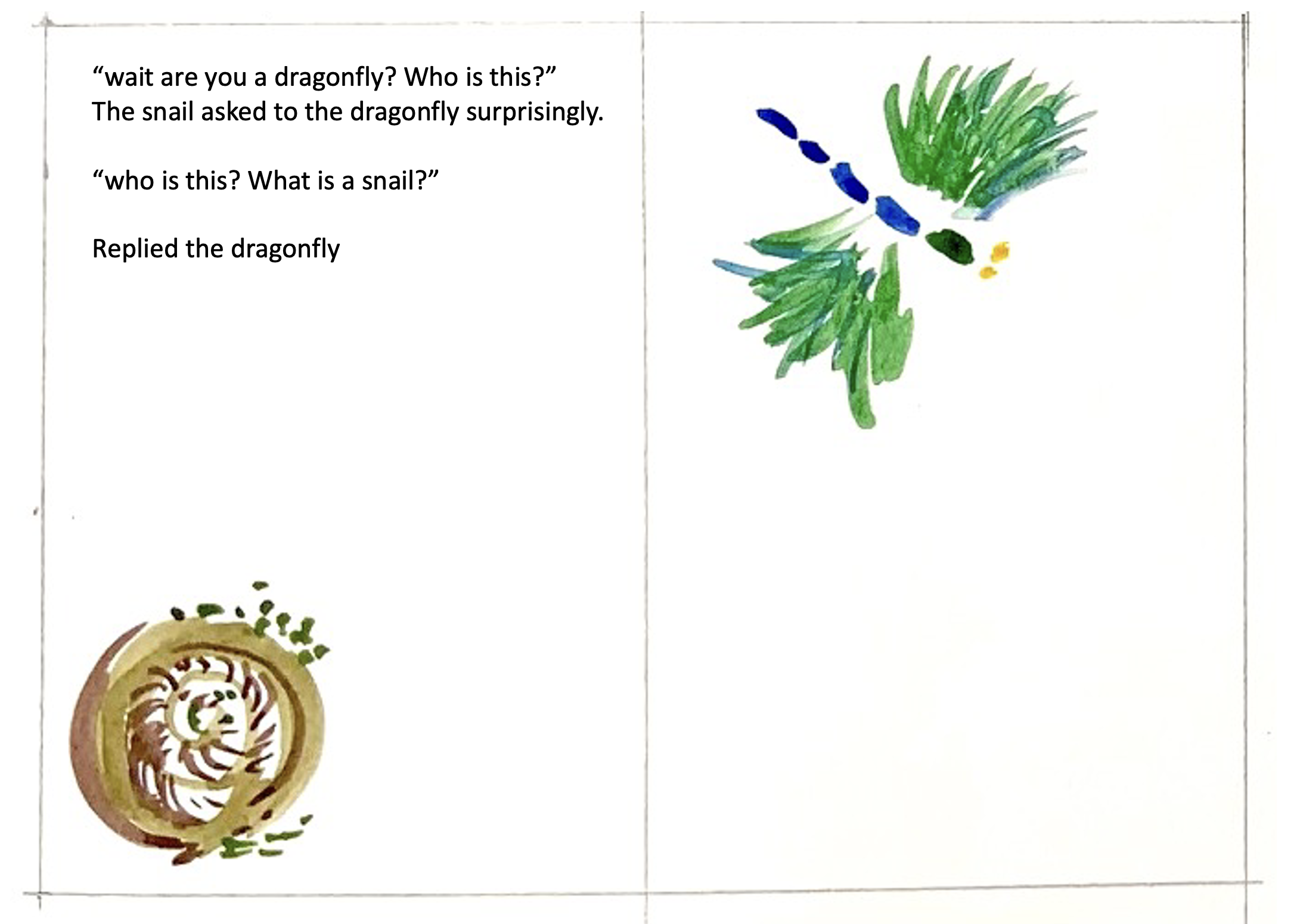 “Aah” said snail and dragonfly scared