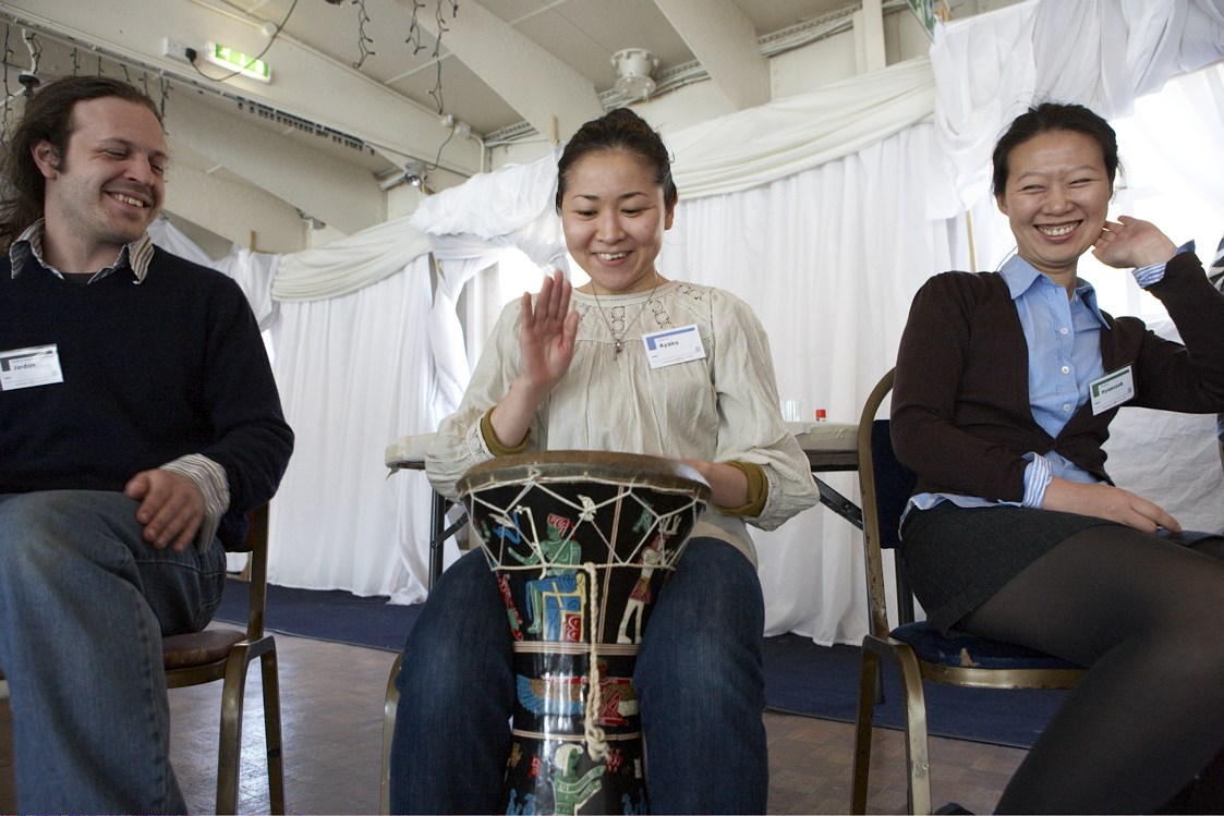 Where English tends to define collective actions by focusing on individual players as influential agents of a given idea, or trend, some non-western languages are able to describe these processes by invoking concepts, such as the African word Ubuntu. For example, Nunchi , or group feeling may serve to rouse collective sympathy for an individual who, from a less generous perspective, may be underperforming within the team. Nunchi contains conventional remedies for improving this situation within the workplace. This includes sharing treats and snacks after working hard, getting everyone’s signature on a get-well-soon card, or bringing latecomers a special breakfast or lunch snack, in case they didn’t have time to eat. We also coined several neologisms, such as metapurpose, which describes the way that a group or team might find a clear raison d'etre, or 'purpose', only after working for some time without an explicit agenda. In a sense, what may become seen, tacitly, as the 'pretext' is subsequently agreed post hoc. While the term sympoiesis is an alternative to ‘co-authorship’, or ‘co-design’, it also challenges the assumption that the purpose of teamwork is only goal-oriented by including the merging of individual beliefs and identities as an outcome of collaboration. The Korean word ‘nunchi’ (눈치) might be translated as 'group sympathy'. It therefore relates to ‘bunwigi’ (분위기), which implies (a collective sensitivity to) the atmosphere or ambience of a situation. Another important Korean word is ‘Jeong’, (정) which is famously elusive to westerners, but important to this paper, as it refers to a complex emotional affinity for people or things. Jeong may be emotionally ambivalent, or even polarised (it has several forms), but it is more lasting than the commonly used word 'love'. In relationship terms it may resemble the bonds of attachment within a very long-standing marriage partnership. Whereas western constructs often seek to identify things objectively (i.e. from an impartial outsider's perspective), 'Jeong' seems to be described as though it gains its meaning from within the field of feelings. Similarly, the Japanese word ‘ma’ is useful, in that it reflects a combined sense of place and time, when describing the decisive moment of action.