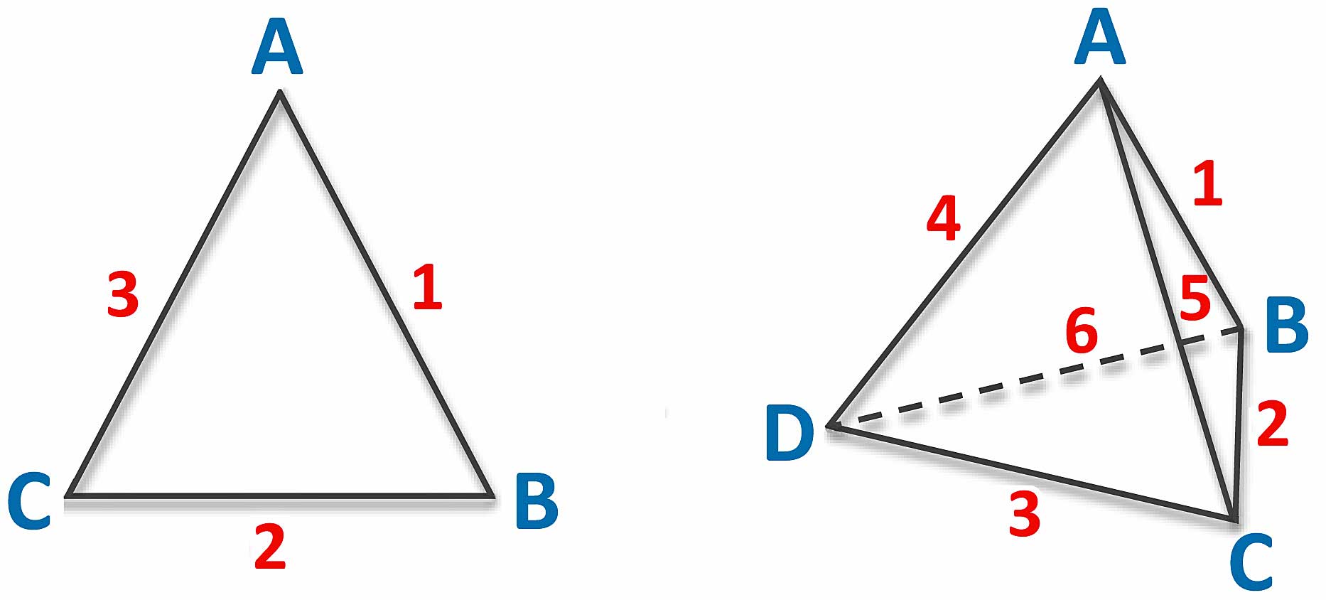 This is can be demonstrated visually in Euler’s law (1752) that relates to polygons (i.e. V+F=E+2). Euler showed that, in any polygon, the number of vertices (V) plus the number of Faces (F) equals the number of Edges (E) plus two. Buckminster Fuller has suggested that the additional two (i.e. relations) is Nature's abundance, because we can apply the same logic to methods that deliver more synergies (depicted as Edges) than the number of players, or agents, (depicted as Vertices) that created them. It is also a suitable form upon which to map interrelated things. What is important for metadesigners, here, is not the form of the tetrahedron itself (Wood, 2005), but the fact that it can be applied to any set of players, parts, or agents, whether it exists as a food recipe, zoo, team, community or garden, etc.