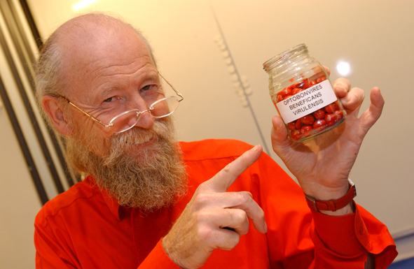 - Mike Davies holds up a bottle of what he called his 'contagious optimism pills' in one of our first AU workshops.