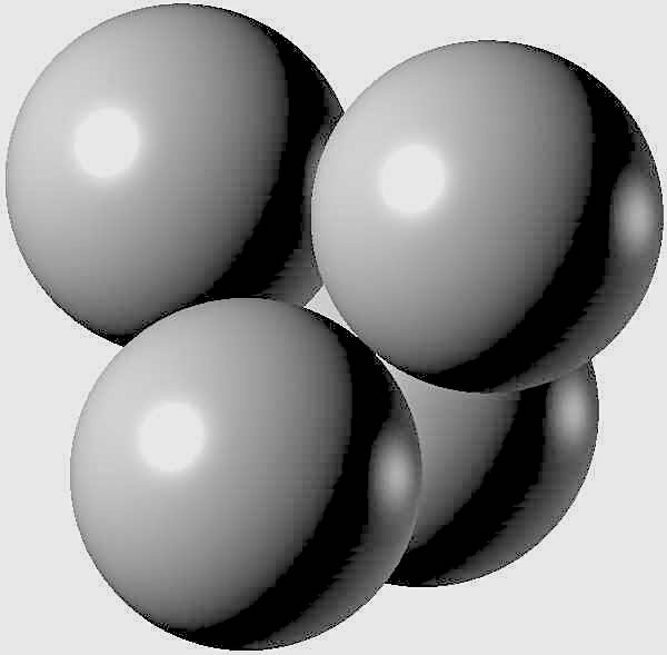 - Placing 4 equal-size spheres together so that they all touch illustrates this idea (see below).