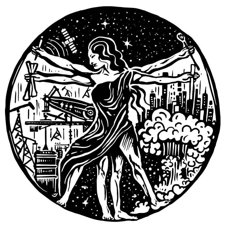 John: That’s a very important idea. Thinking about the ‘Anthropocene’ is both daunting and stultifying. How can we visualise something that is part of ourselves, yet too big to see? I guess some readers might be put off by messages that are starkly apocalyptic. And it is easy to polarise possible futures as either Utopias or Dystopias. Maybe your images also invoke a mythical past that make the future seem more tangible. Your first illustration of the Anthropocene (left hand image, above) makes me think of well-meaning local endeavours that turned out to be damaging. The middle image celebrates the confident humanism of Leonardo’s famous Homo Vitruvianus drawing but adds the speed and ugliness of the first industrial revolution. And I love your allusion to current gender equality discussions. I guess your third mage is the starkest of all as it depicts the cosmic loneliness of a planet suffocated by a man-made maelstrom of weeds, roots and burned out digital gadgetry. Alas poor Yorick…