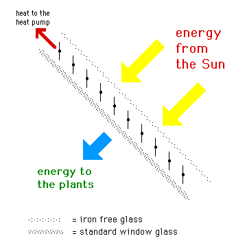 - Heat generated on the shutters can be stored in insulated tanks below the green house and released in cold periods (at night, for instance), or used for domestic purposes such as space heating or water-heating.