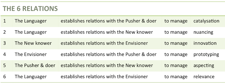 - They enable specific behaviours and roles to facilitate creative exchange at different levels of ‘knowing’ and ‘doing’.