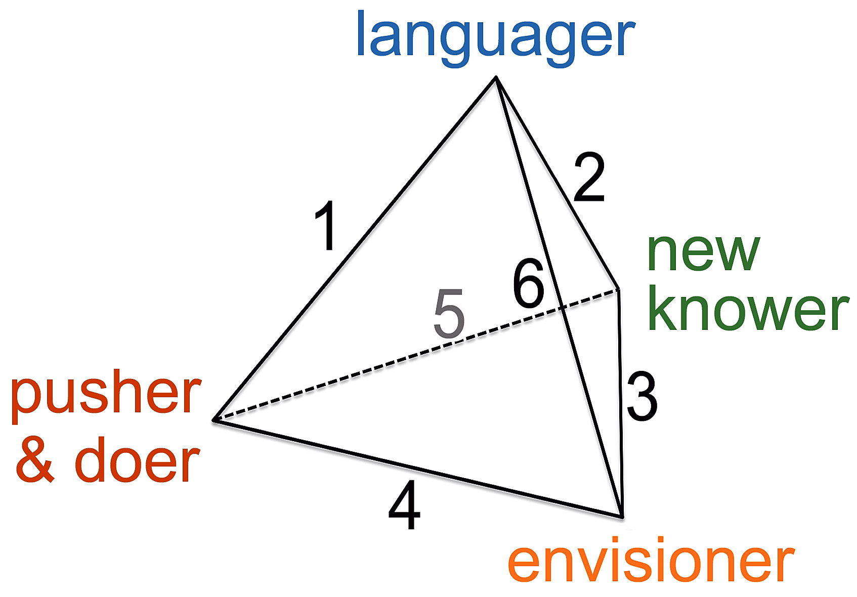 By mapping the four styles as a tetrahedron (see Figure 2) we were then able to identify their six relations as follows: