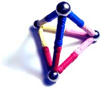 • 1 - Use the model to show how each node (e.g. one of the green letters) links directly to the other three letters (i.e. along the tetrahedron's edges).
