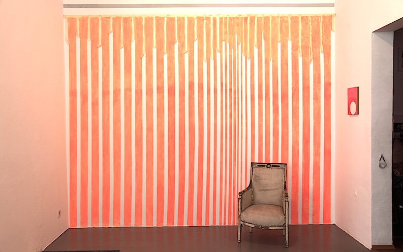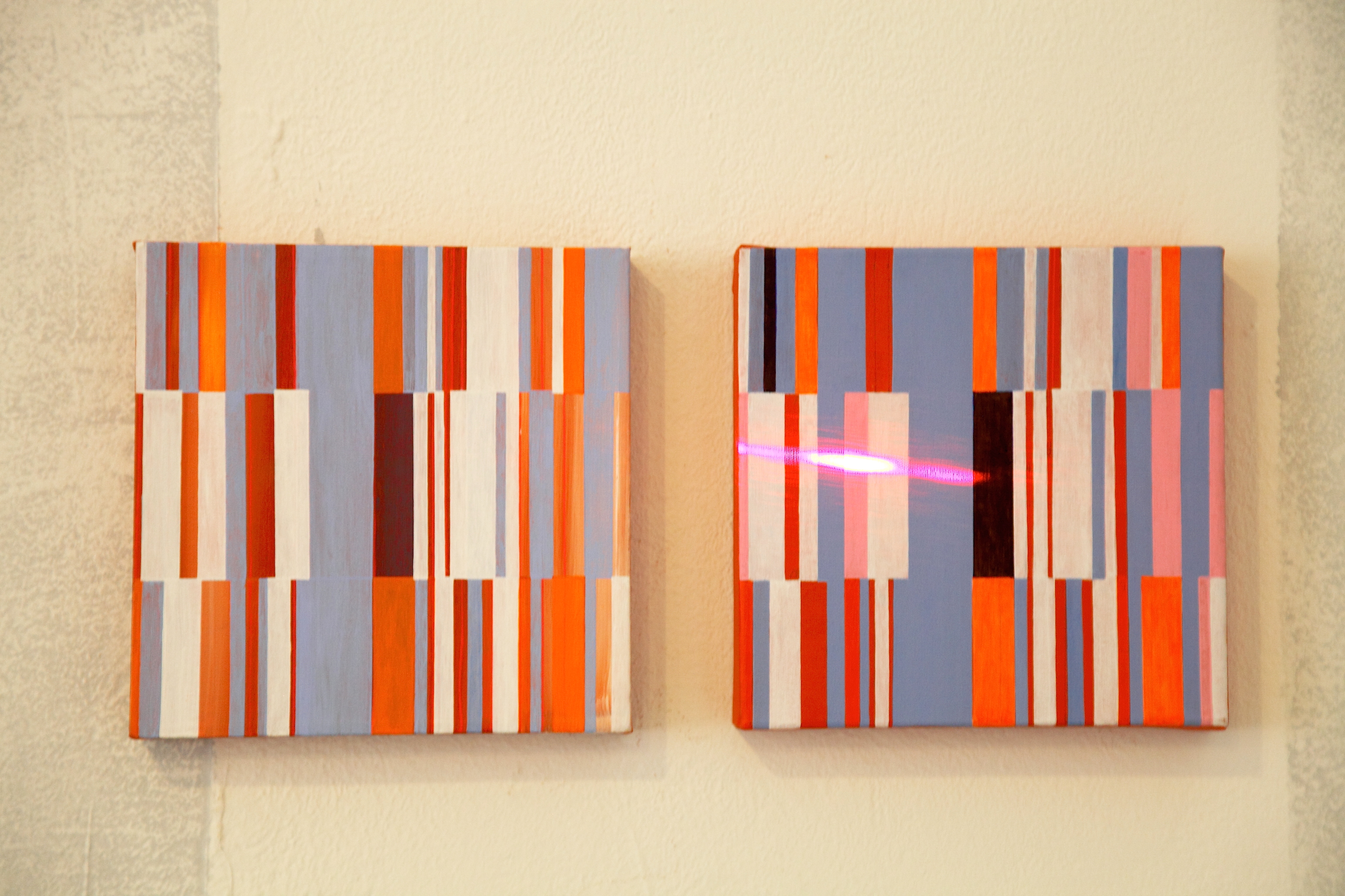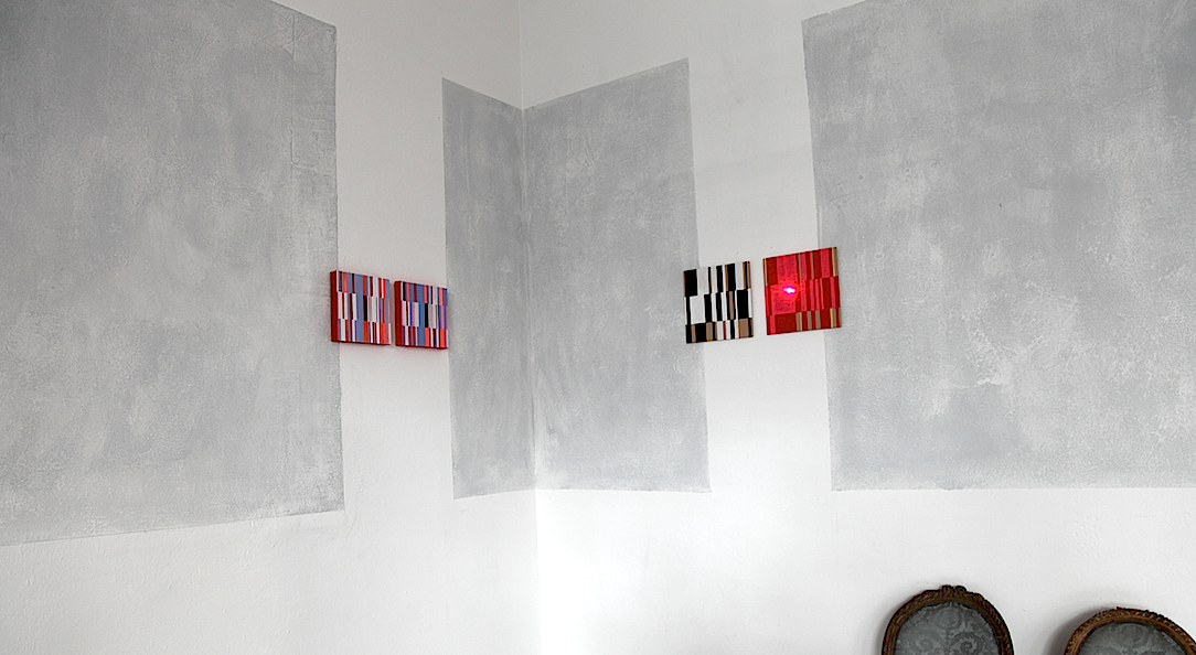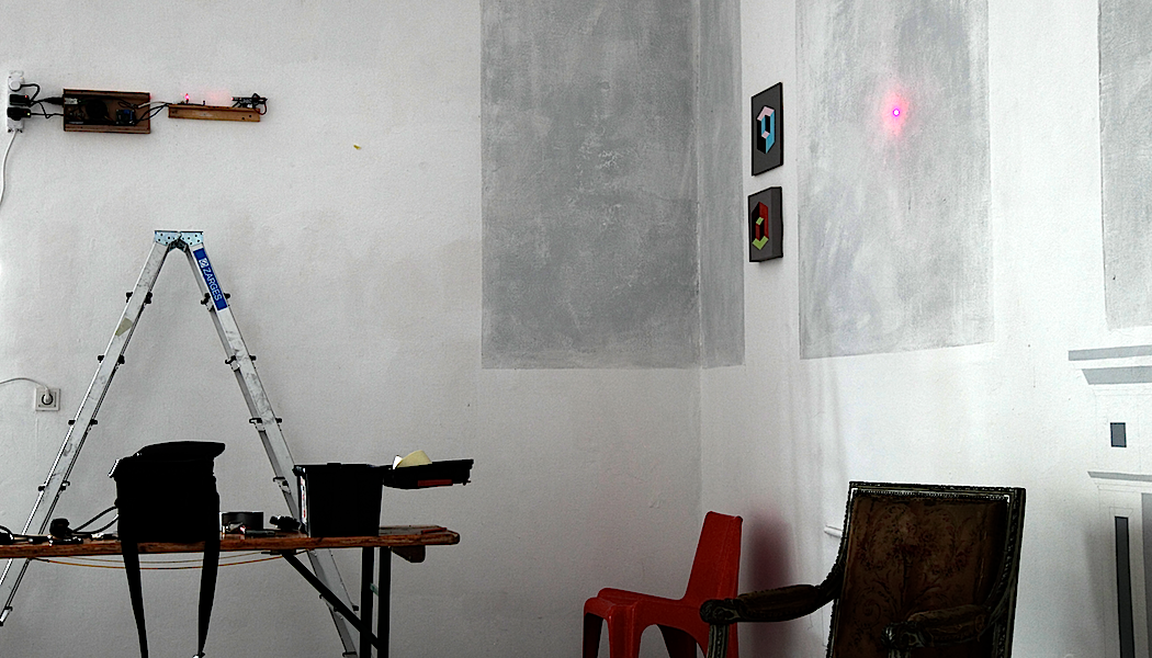 At the conceptual level, it is a deliberate intrusion into Alma's depiction of a drawing room. You may have noticed that it drives a red laser beam that coldly scrutinises the paintings as it travels around the room before returning to its original position.