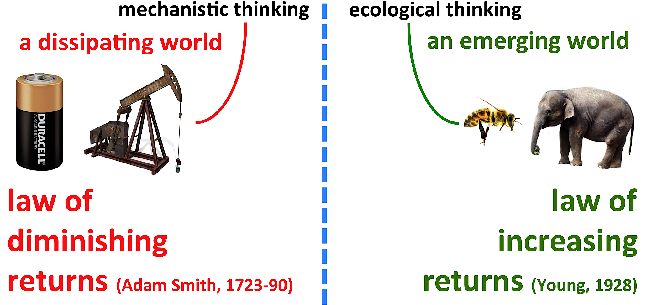 Of course, it is no less dangerous to polarise male and female qualities as it is to suggest that Nature is somehow the 'opposite' of technology. Nonetheless, in my view it is useful to map the quantitative, physics paradigm (on the left-hand side of the diagram below) as distinct from from the life sciences on the RH side. For example, belief systems on the LH and RH sides of the diagram (below) have very different ways of creating and sustaining themselves. For example, where LH systems tend to be allopoietic, those on the RH side are autopoietic. One of the observations of Maturana & Varela is that what we may describe as 'life sciences' derive more from the tradition of dissecting dead organisms, rather than seeking to understand the world of the living in a systemic way. Judging by the curriculum in many universities today, this may still be true.
