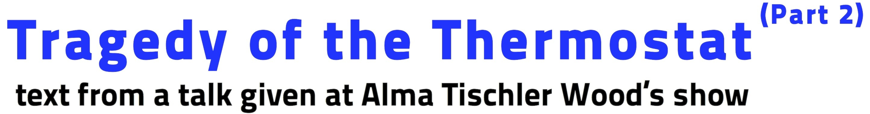 The tragedy of the thermostat is that it overrides the adaptive processes that regulate our metabolisms. Our addiction to central heating and standardised weights and measures has made us forget why we feel ‘too hot’ or ‘too cold’. Perhaps it is the job of the ‘smart’, internet-connected thermostat to tease us, or to trick us, into wearing more sensible clothing, to get more exercise, or to eat better. In the 21st century, clocks and thermostats as we know them are obsolescent because they distance us from Nature and ourselves. What we need is a radical re-envisioning of these relationships; guided, perhaps, by the insights and sensibilities of artists.