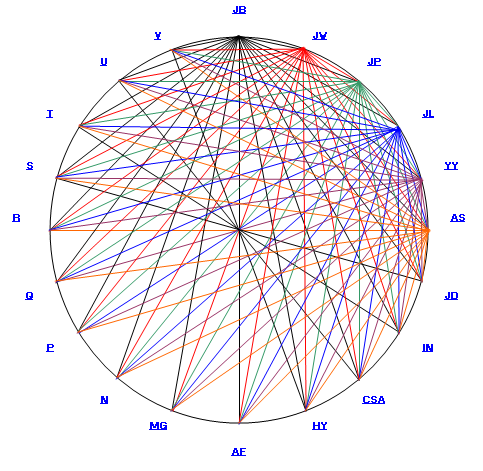 Figure 2 - The 12 chemicals normally tested, with some significant relations highlighted